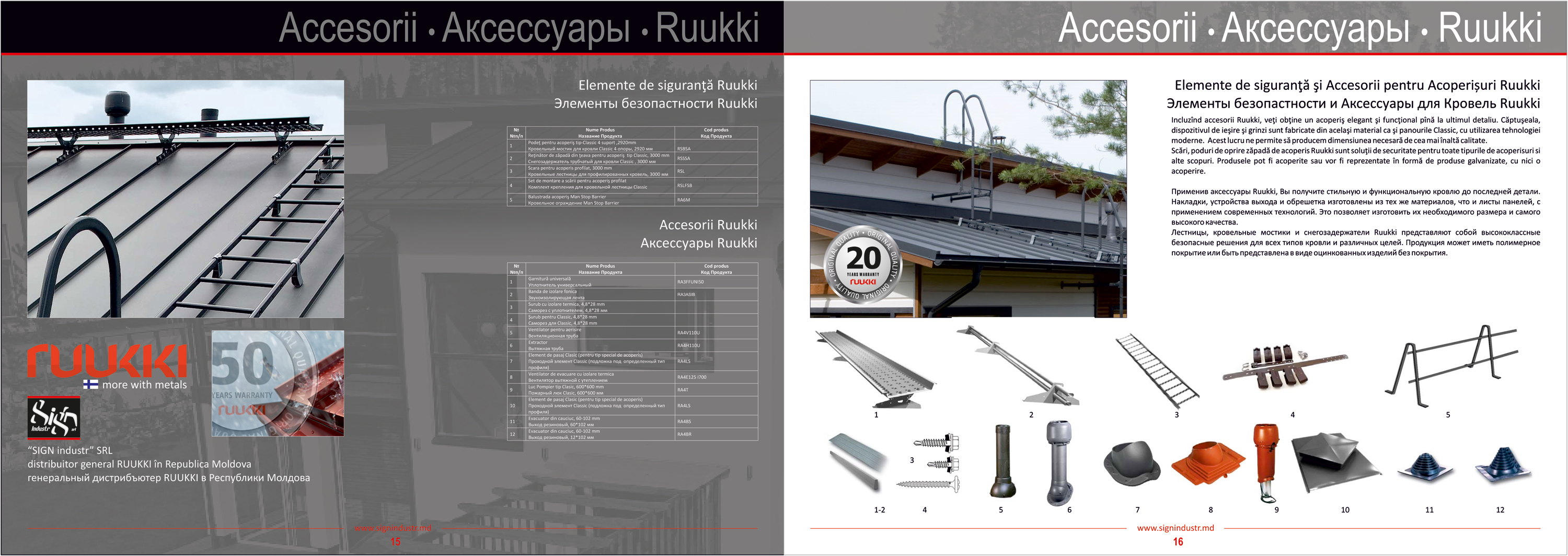 - Аксессуары Ruukki такие как: переходные мостики, снегозадержатели, лесницы, ограждения, и др.