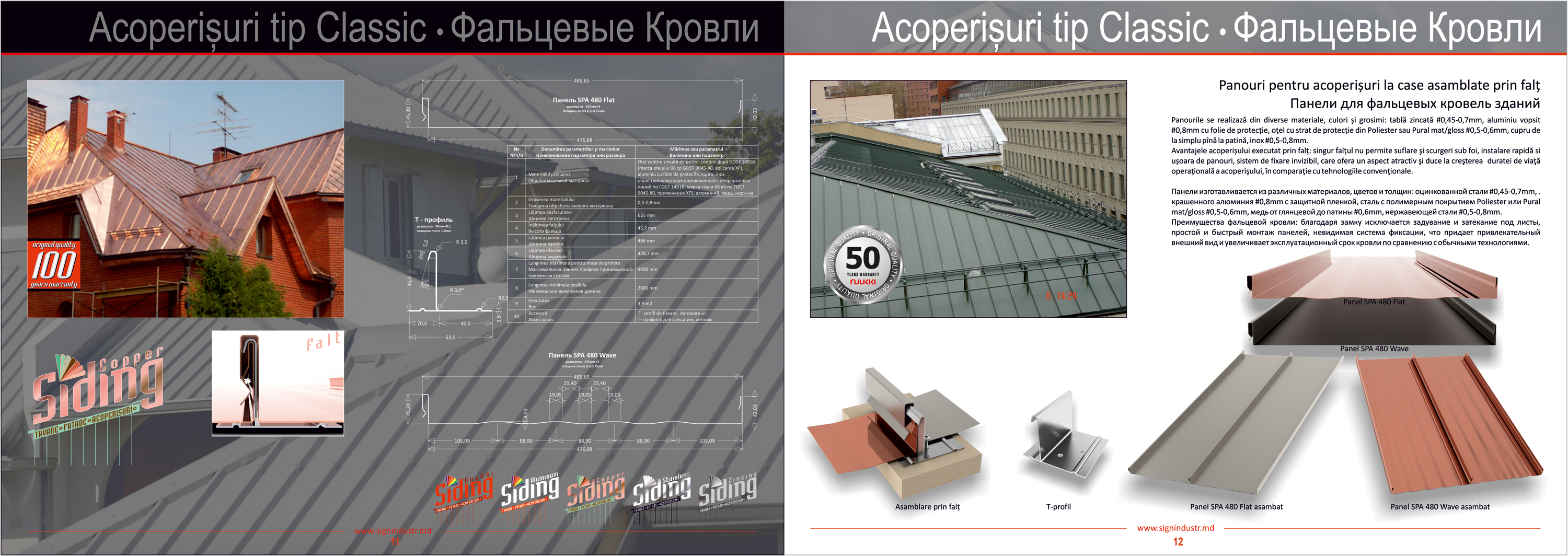 и многих др. изготовленных из материалов, таких как алюминий анодированный или крашенный (FALZONAL), сталь с полимерным покрытием (RUUKKI), оцинкованной стали (GALVA), и самый лучший материал для кровли - медь (LUVATA).