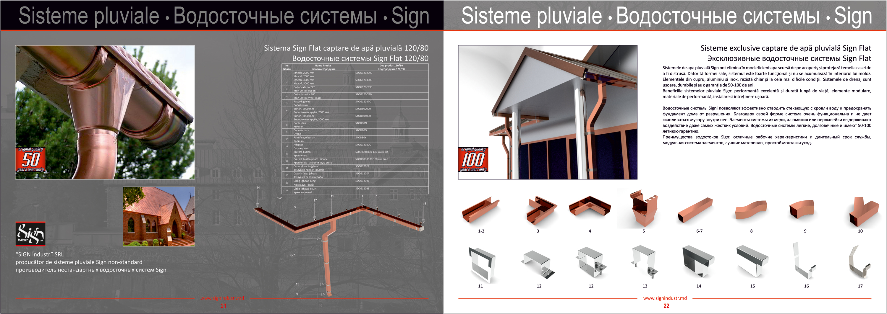 - Водосточные системы Sign эксклюзив из алюминия, меди, нержавейки имеющие эффектный внешний вид и большой срок гарантии. Изготавливаются под конкретный заказ.